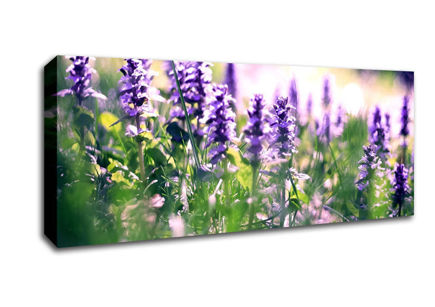 Lupin Flowers Panoramic Canvas Print handmade in the UK. Stretched over a 2 inch thick wooden box frame, ready to hang on your wall.