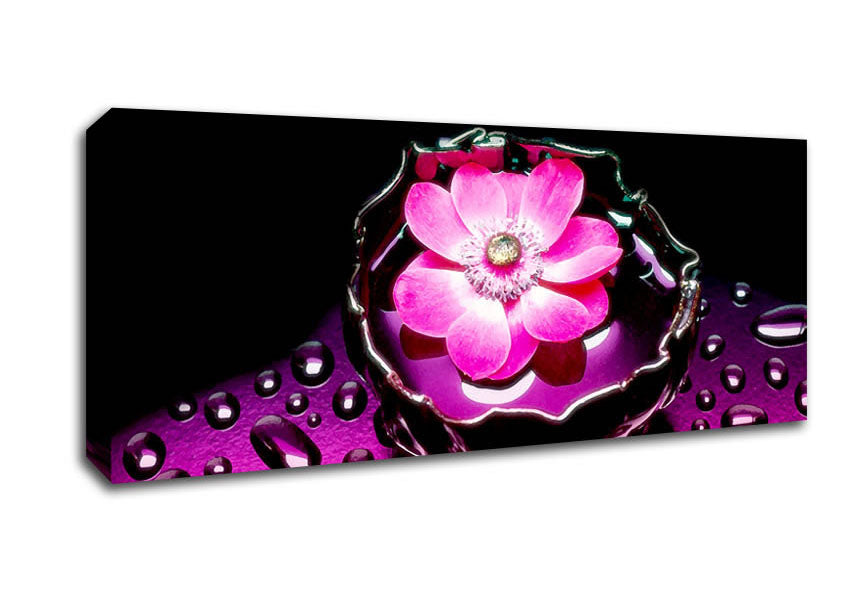 Pink Flower Splash Panoramic Canvas Print handmade in the UK. Stretched over a 2 inch thick wooden box frame, ready to hang on your wall.