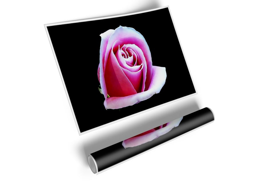Pink Rose On Black Poster printed on high quality canvas paper, ready to display.