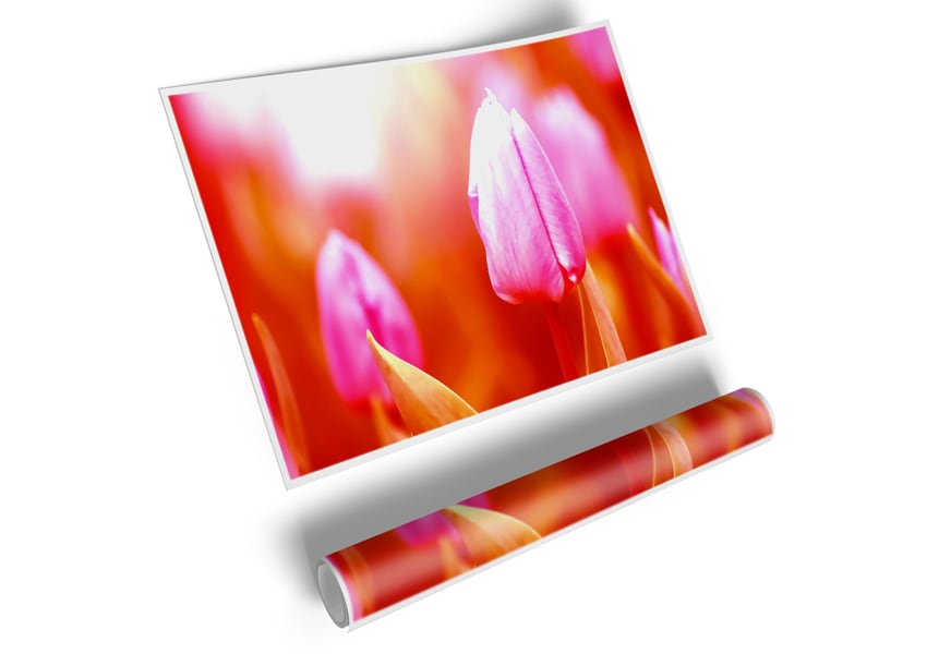 Pink Tulip On Red Poster printed on high quality canvas paper, ready to display.