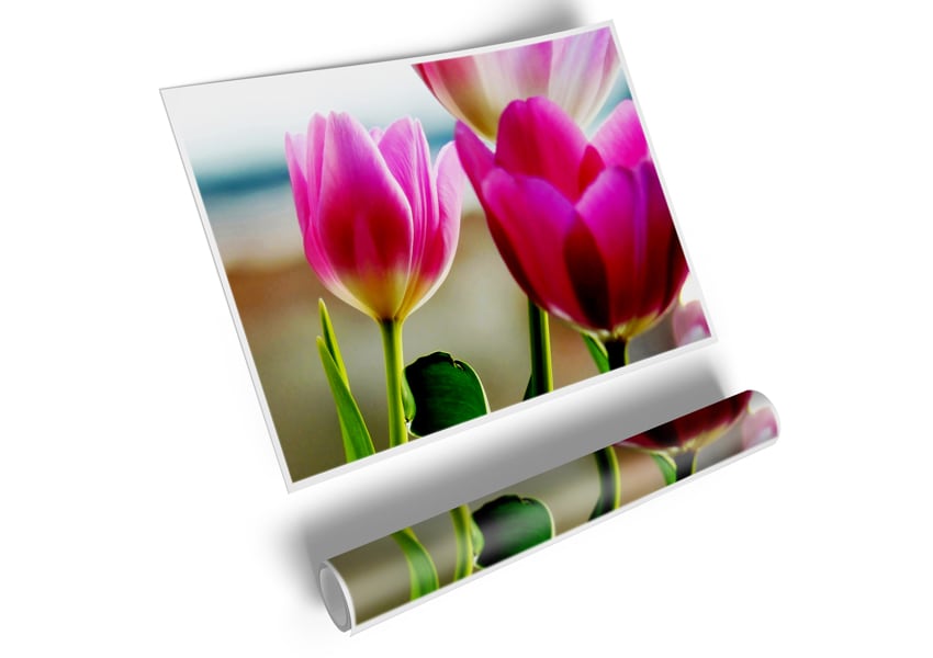 Pink Tulip Parade Poster printed on high quality canvas paper, ready to display.
