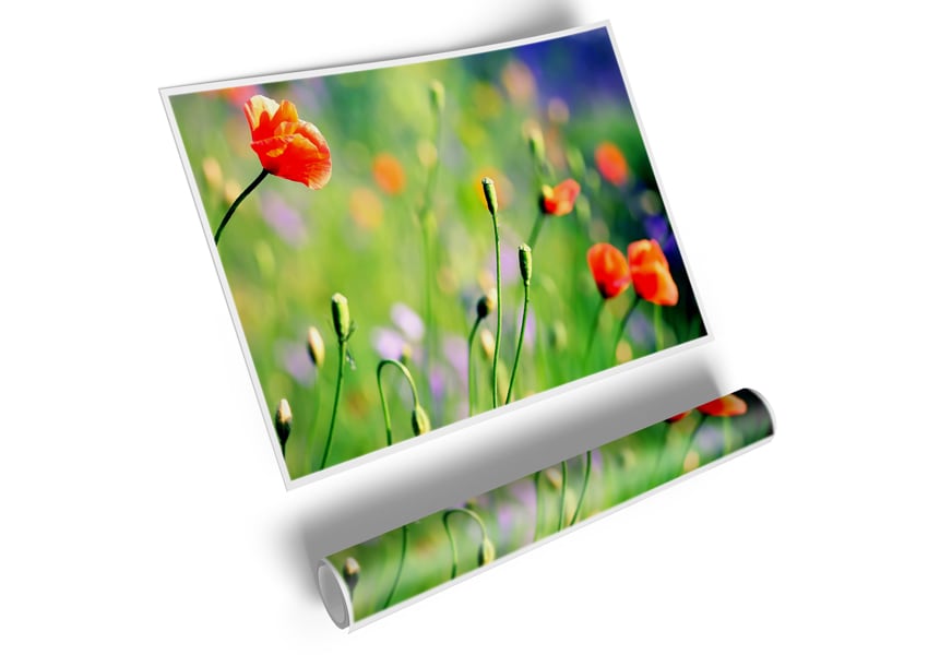 Poppy Meadow Poster printed on high quality canvas paper, ready to display.