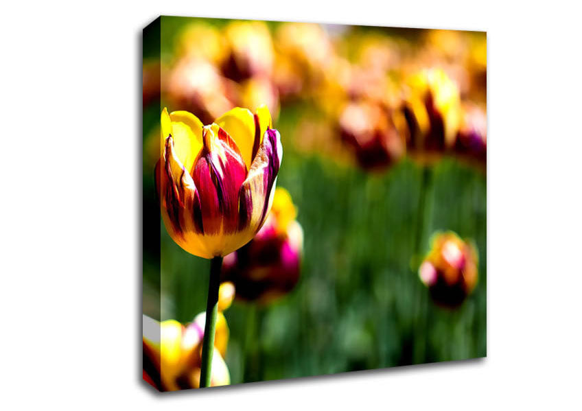 Botanical Garden Tulips Square Canvas Print handmade in the UK. Stretched over a 2 inch thick wooden box frame, ready to hang on your wall.