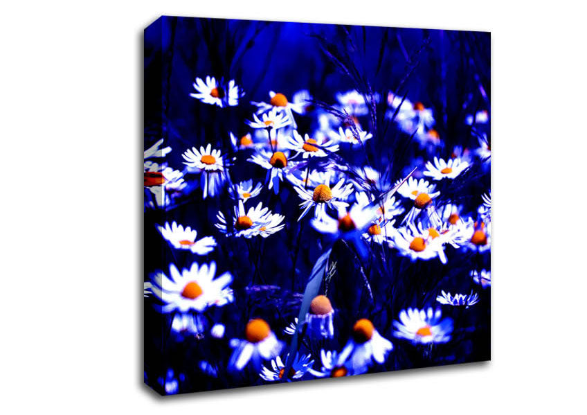 Chamomile Flowers Square Canvas Print handmade in the UK. Stretched over a 2 inch thick wooden box frame, ready to hang on your wall.