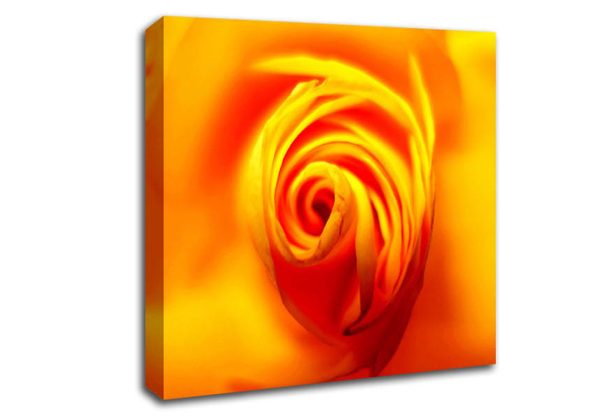 Golden Rose Centre Square Canvas Print handmade in the UK. Stretched over a 2 inch thick wooden box frame, ready to hang on your wall.