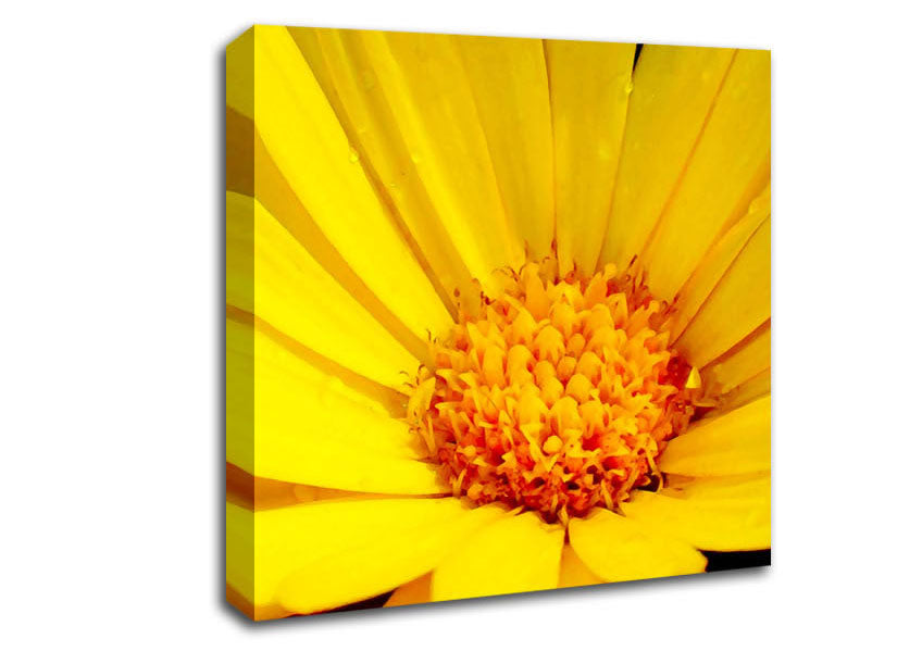 Golden Yellow Daisy Square Canvas Print handmade in the UK. Stretched over a 2 inch thick wooden box frame, ready to hang on your wall.