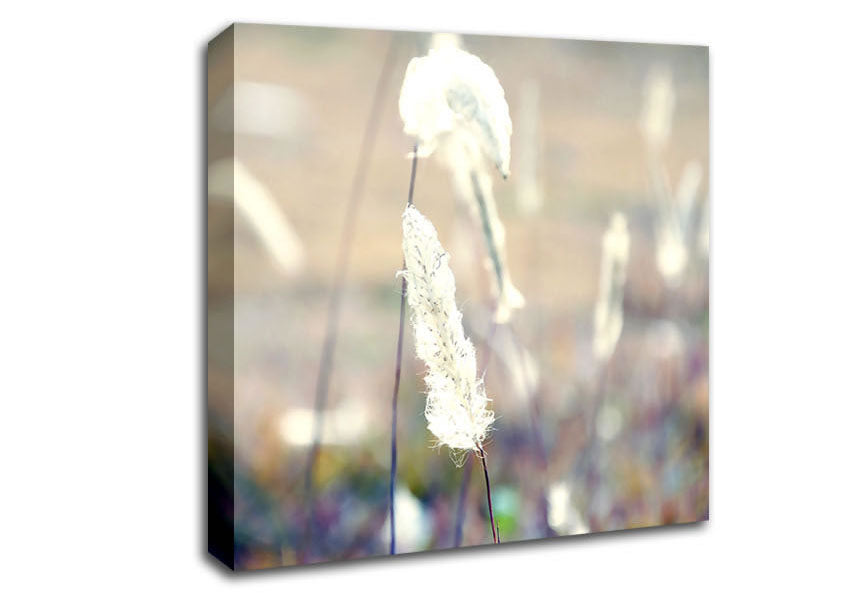 Grass Fluff Summer Square Canvas Print handmade in the UK. Stretched over a 2 inch thick wooden box frame, ready to hang on your wall.