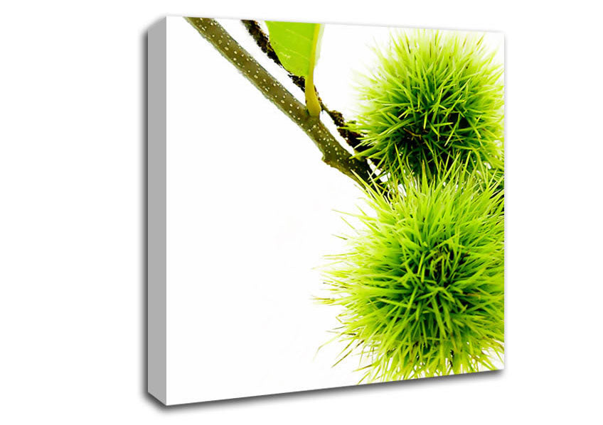 Green Pom poms Square Canvas Print handmade in the UK. Stretched over a 2 inch thick wooden box frame, ready to hang on your wall.