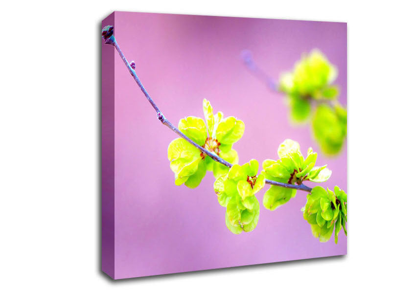 Small Green Flowers Square Canvas Print handmade in the UK. Stretched over a 2 inch thick wooden box frame, ready to hang on your wall.