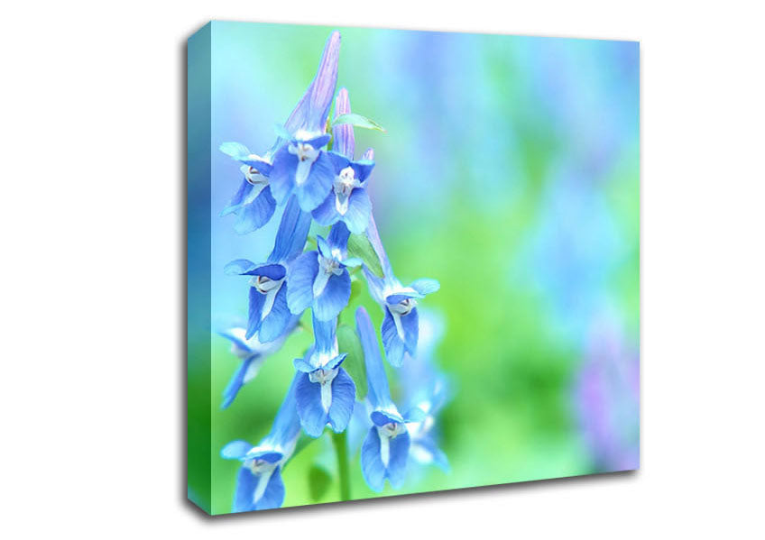 Soft Focus Small Blue Flowers Square Canvas Print handmade in the UK. Stretched over a 2 inch thick wooden box frame, ready to hang on your wall.