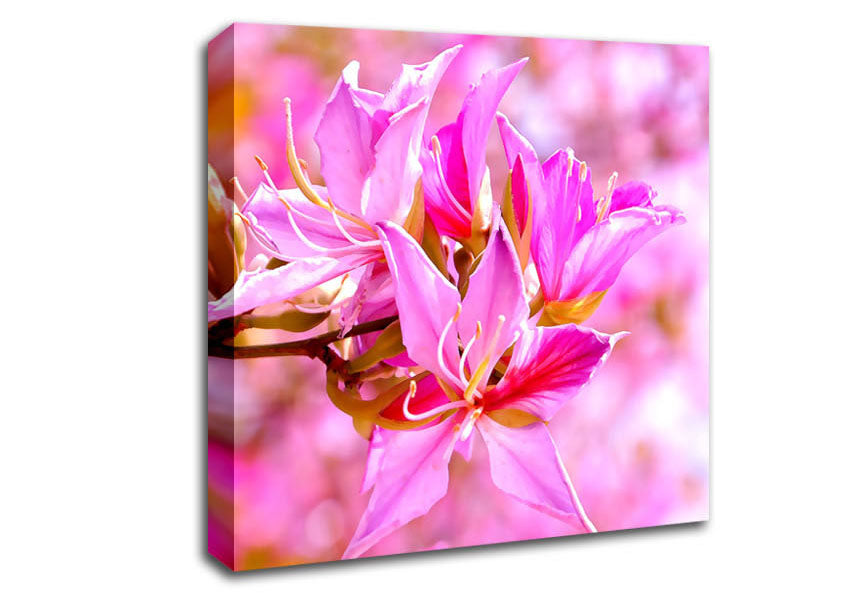 Stunning Deep Pink Flowers Square Canvas Print handmade in the UK. Stretched over a 2 inch thick wooden box frame, ready to hang on your wall.