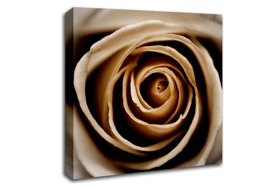 Stunning Sepia Rose Close-Up Square Canvas Print handmade in the UK. Stretched over a 2 inch thick wooden box frame, ready to hang on your wall.