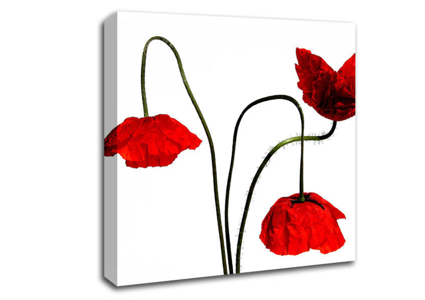 Stunning Trio Of Poppys Square Canvas Print handmade in the UK. Stretched over a 2 inch thick wooden box frame, ready to hang on your wall.