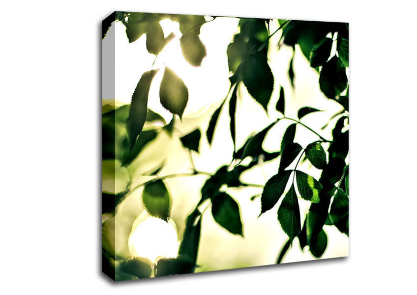 Summer Green Leaves Square Canvas Print handmade in the UK. Stretched over a 2 inch thick wooden box frame, ready to hang on your wall.
