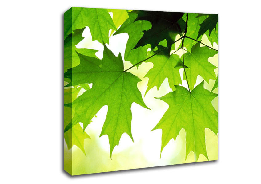 Summer Leaves Square Canvas Print handmade in the UK. Stretched over a 2 inch thick wooden box frame, ready to hang on your wall.