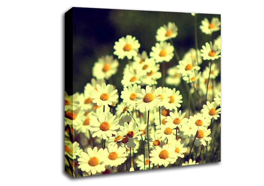 Vintage Daisies Square Canvas Print handmade in the UK. Stretched over a 2 inch thick wooden box frame, ready to hang on your wall.