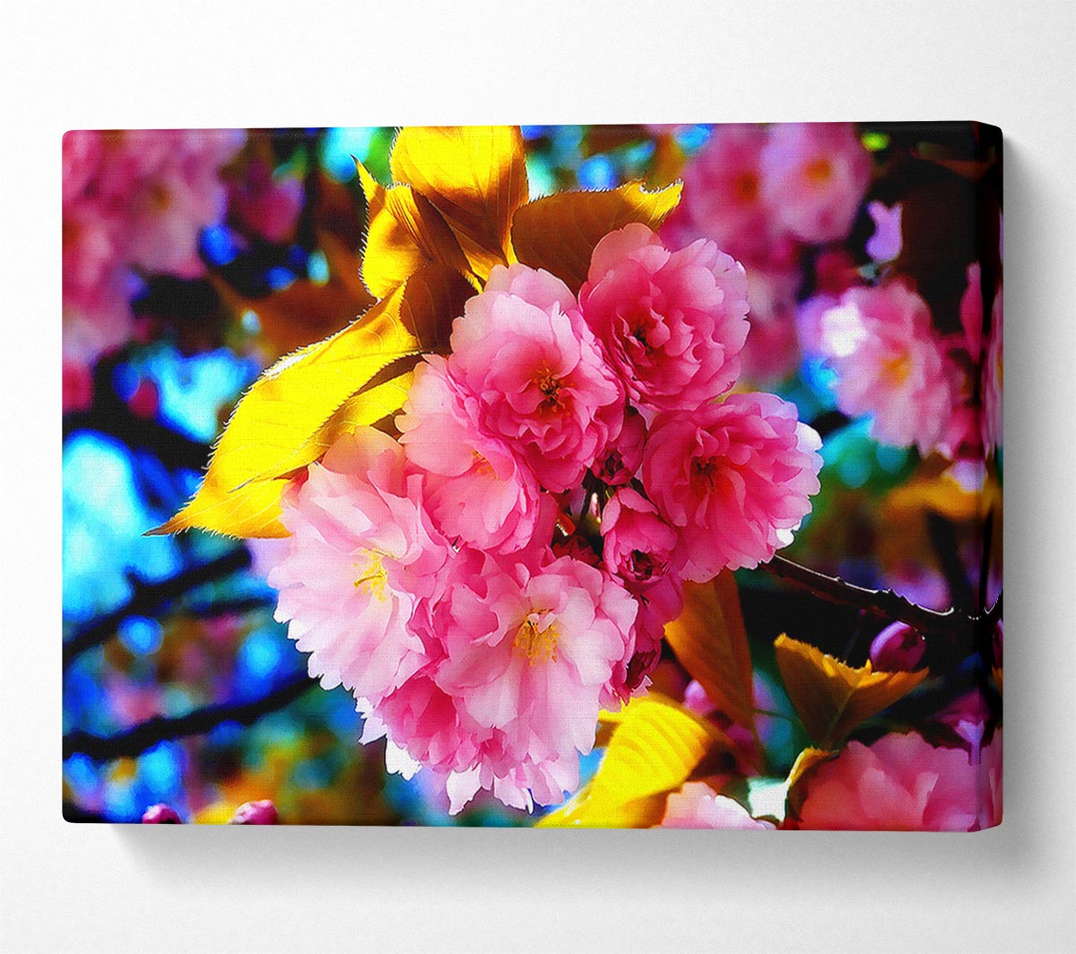 Beautiful Cherry Blossom Bunch Canvas Print handmade in the UK. Stretched over a 2 inch thick wooden box frame, ready to hang on your wall.