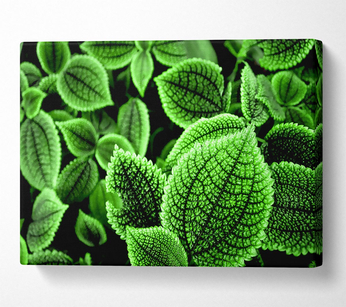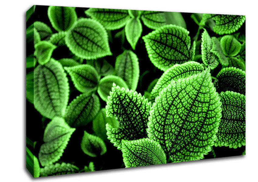Beautiful Green Leaves Canvas Print handmade in the UK. Stretched over a 2 inch thick wooden box frame, ready to hang on your wall.