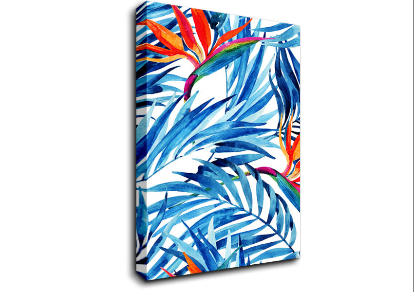 Bird Of Paradise Canvas Print handmade in the UK. Stretched over a 2 inch thick wooden box frame, ready to hang on your wall.