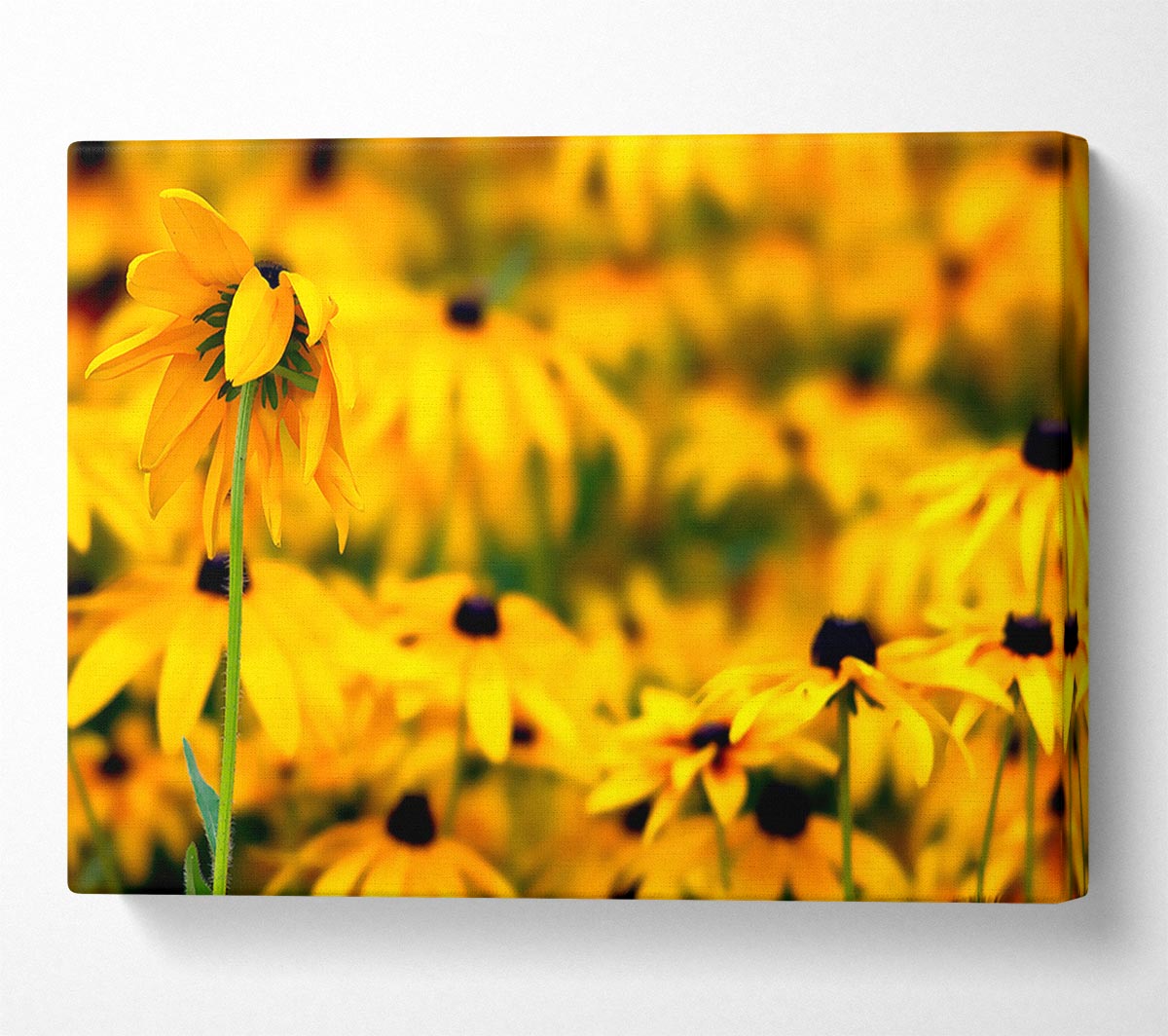 Black Eyed Susan Flowers Canvas Print handmade in the UK. Stretched over a 2 inch thick wooden box frame, ready to hang on your wall.
