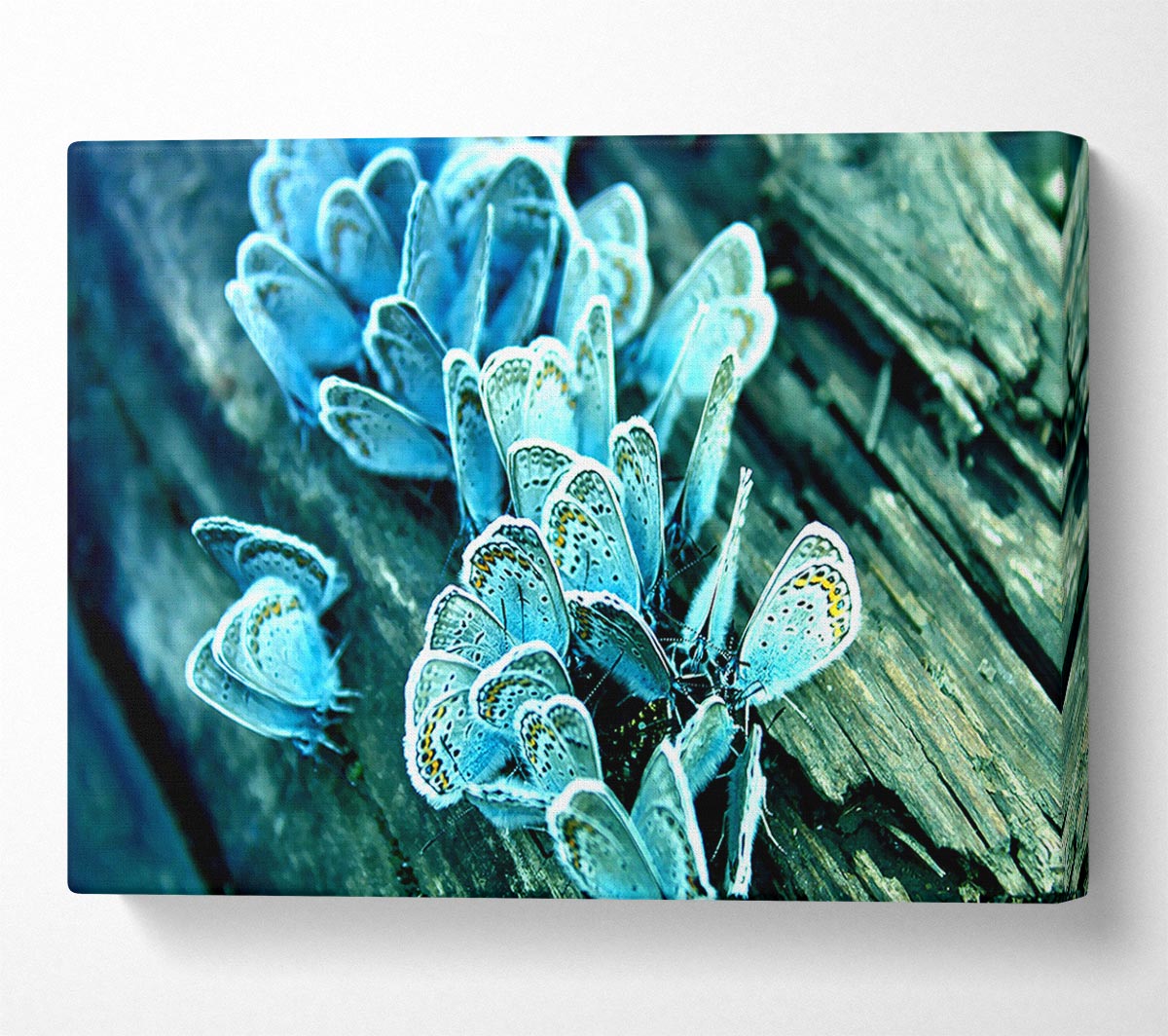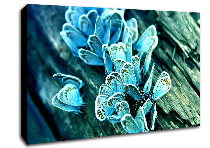 Blue Butterflies Canvas Print handmade in the UK. Stretched over a 2 inch thick wooden box frame, ready to hang on your wall.