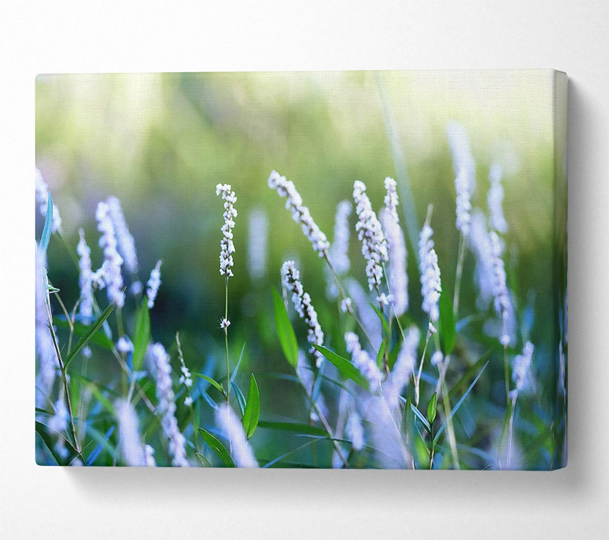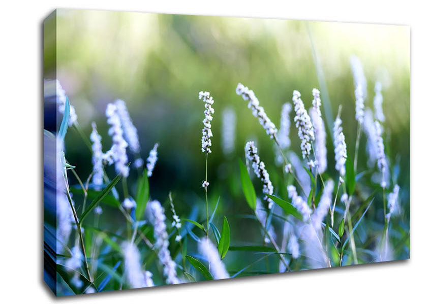 Blue Field Flowers Canvas Print handmade in the UK. Stretched over a 2 inch thick wooden box frame, ready to hang on your wall.