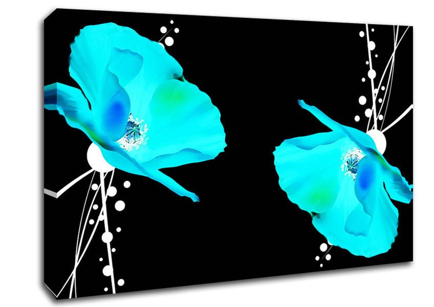 Blue Poppy Abstract Canvas Print handmade in the UK. Stretched over a 2 inch thick wooden box frame, ready to hang on your wall.
