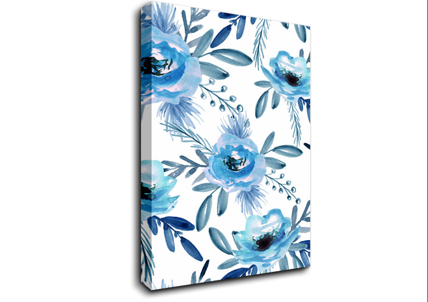 Blue Rose Bloom Canvas Print handmade in the UK. Stretched over a 2 inch thick wooden box frame, ready to hang on your wall.