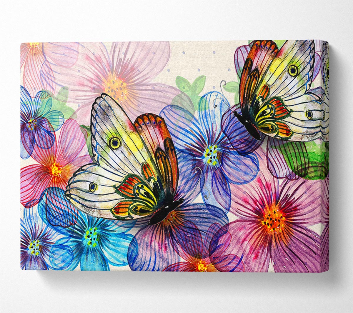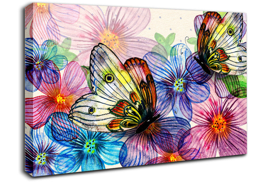 Butterfly Petal Madness Canvas Print handmade in the UK. Stretched over a 2 inch thick wooden box frame, ready to hang on your wall.