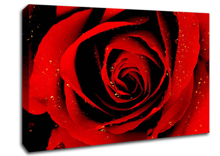 Close-Up Of A Red Rose Canvas Print handmade in the UK. Stretched over a 2 inch thick wooden box frame, ready to hang on your wall.