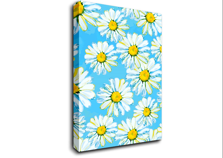 Daisy Blues Canvas Print handmade in the UK. Stretched over a 2 inch thick wooden box frame, ready to hang on your wall.