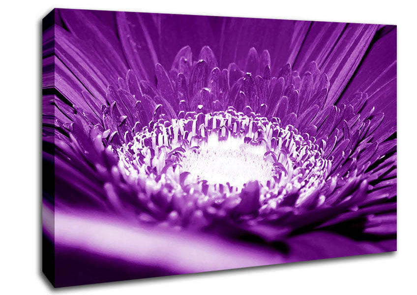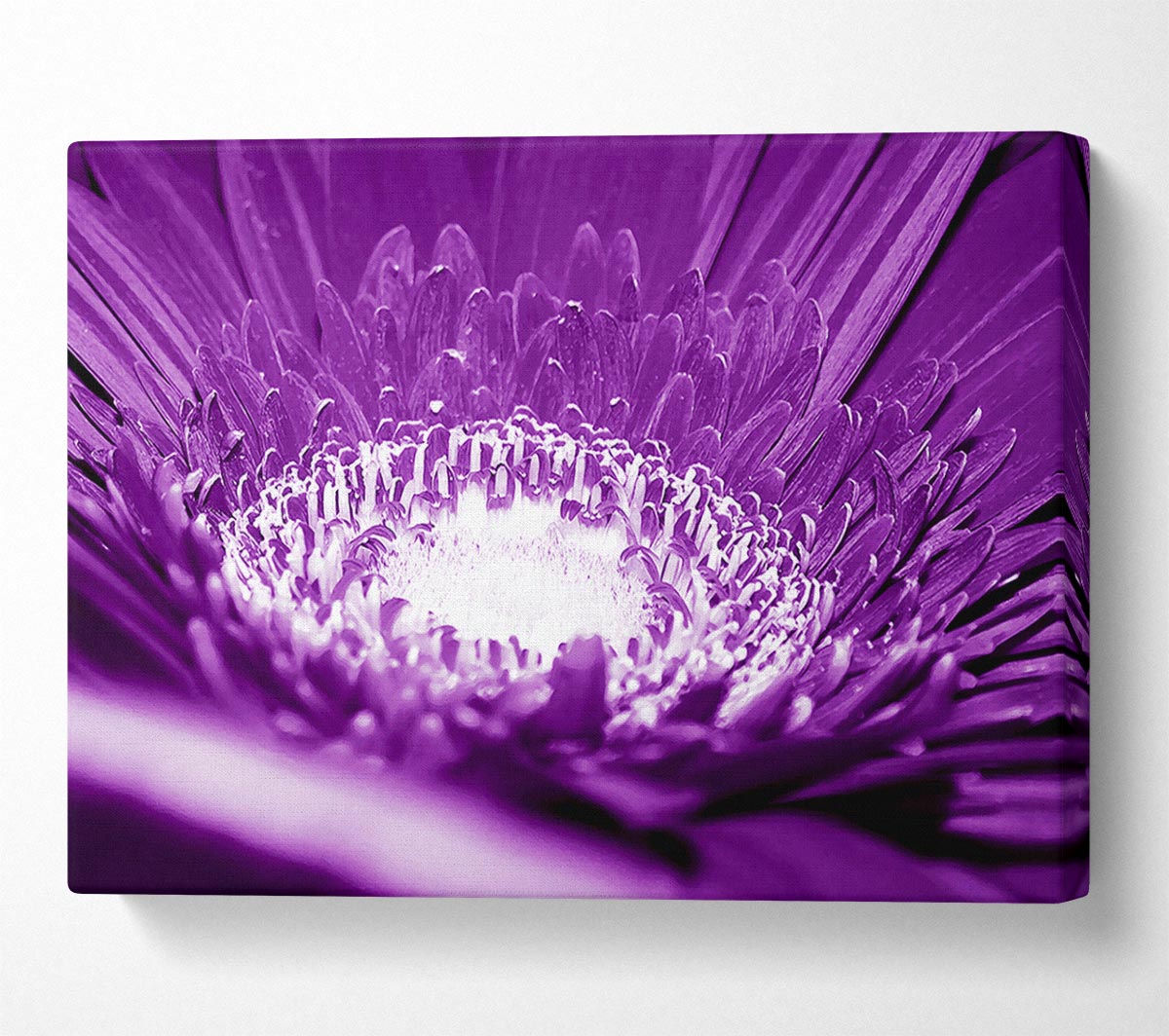 Daisy Centre Purple Canvas Print handmade in the UK. Stretched over a 2 inch thick wooden box frame, ready to hang on your wall.