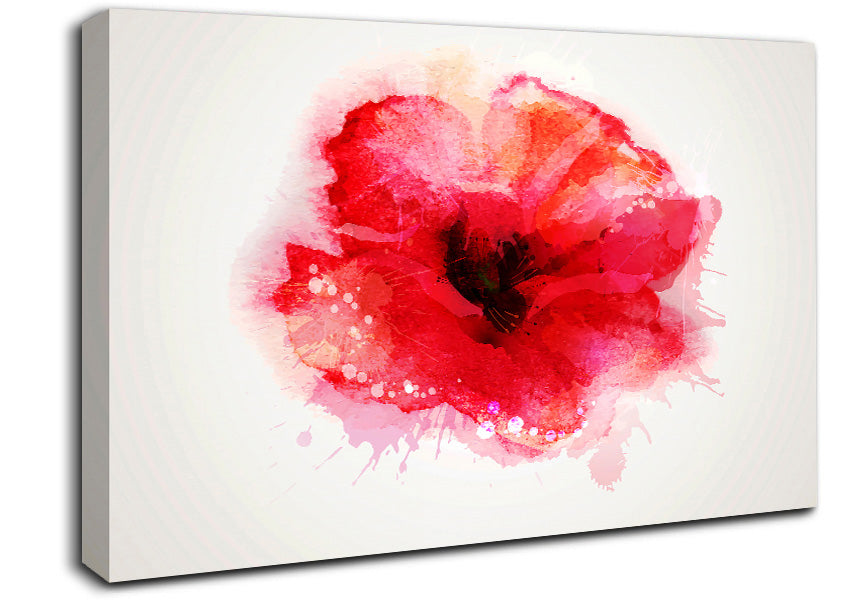 Delicate Poppy Canvas Print handmade in the UK. Stretched over a 2 inch thick wooden box frame, ready to hang on your wall.