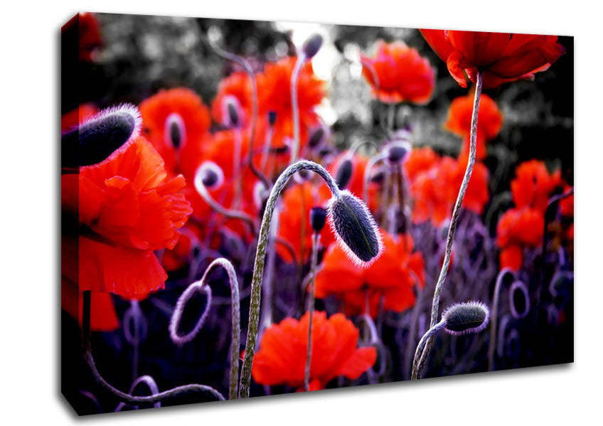 Field Of Red Poppys Canvas Print handmade in the UK. Stretched over a 2 inch thick wooden box frame, ready to hang on your wall.