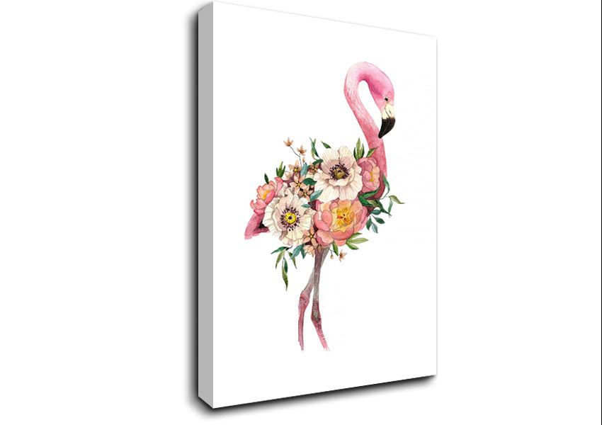 Flamingo Flower Body Canvas Print handmade in the UK. Stretched over a 2 inch thick wooden box frame, ready to hang on your wall.