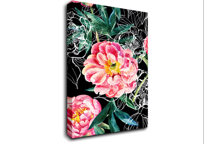 Huge Pink Flowers Canvas Print handmade in the UK. Stretched over a 2 inch thick wooden box frame, ready to hang on your wall.