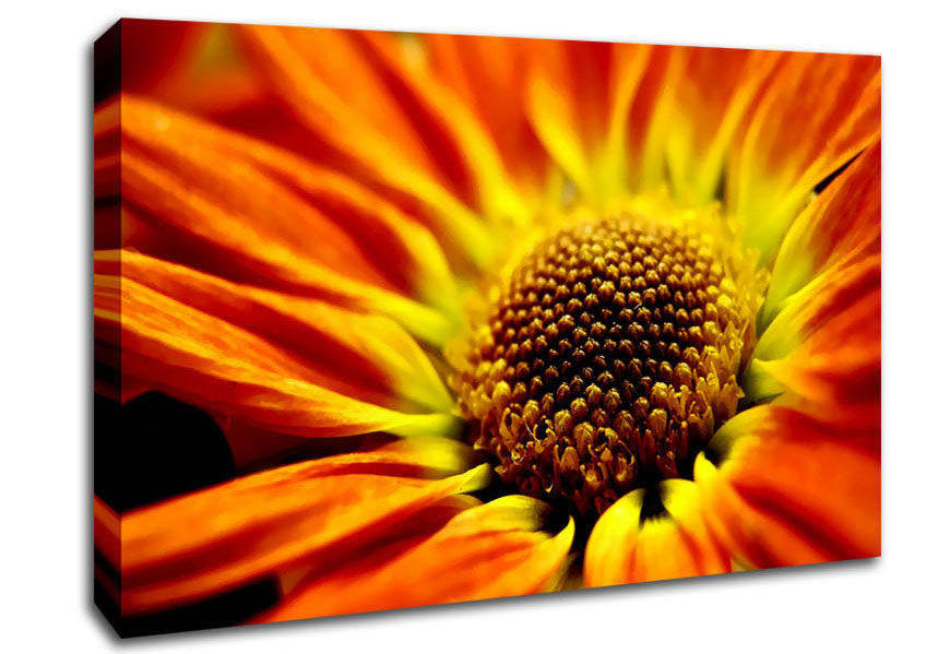 Orange Petal Daisy Canvas Print handmade in the UK. Stretched over a 2 inch thick wooden box frame, ready to hang on your wall.