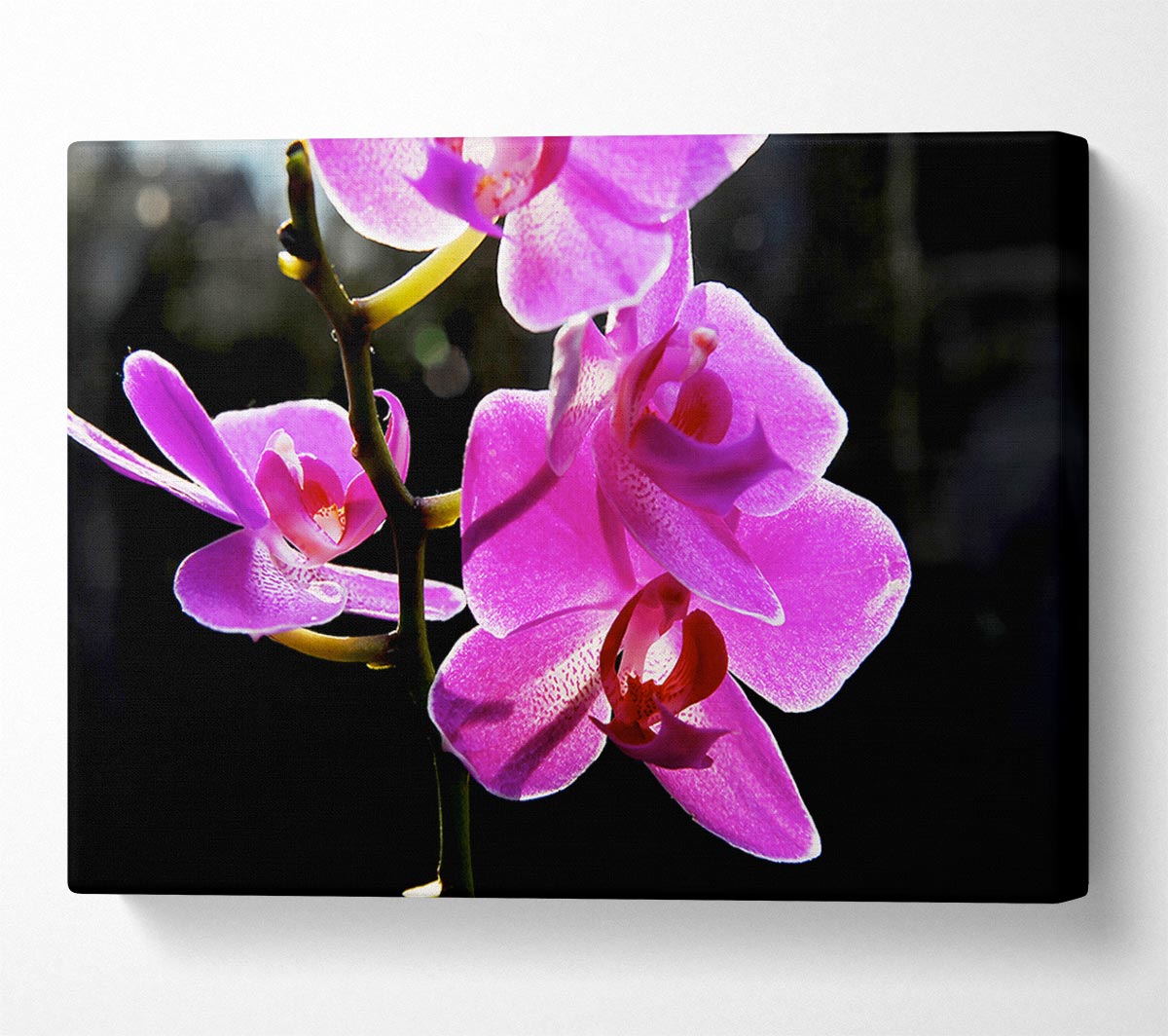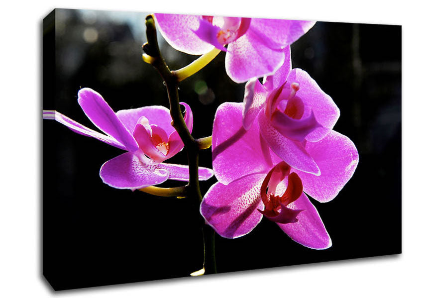 Orchid In Sunlight Canvas Print handmade in the UK. Stretched over a 2 inch thick wooden box frame, ready to hang on your wall.