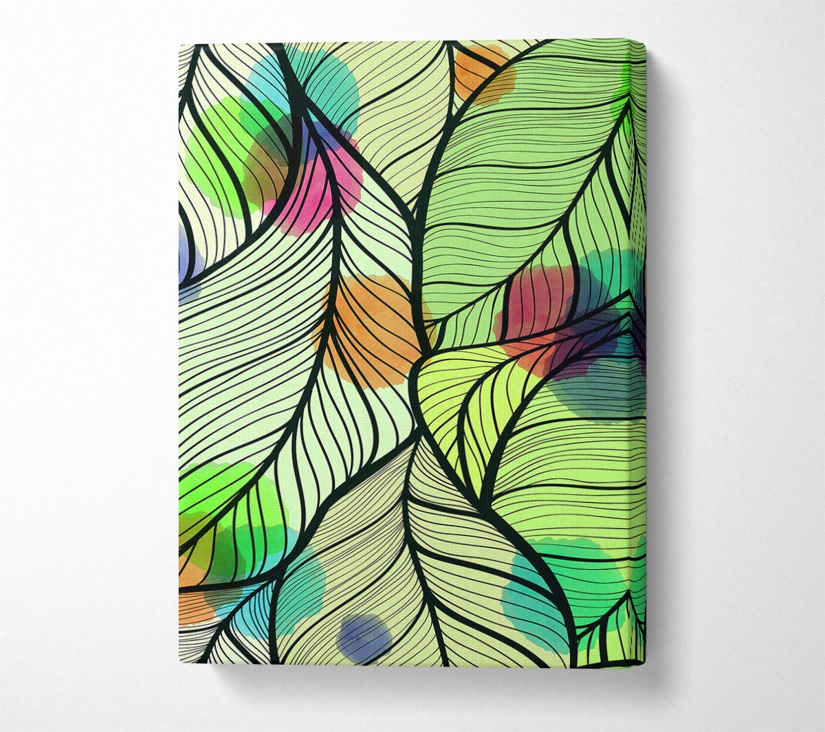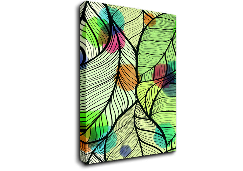 Paint Splash Leaves Canvas Print handmade in the UK. Stretched over a 2 inch thick wooden box frame, ready to hang on your wall.