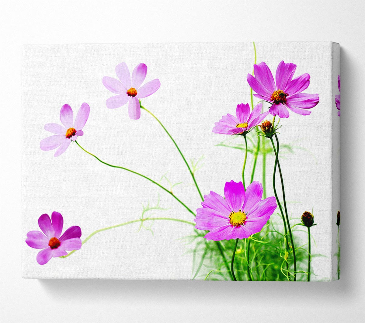 Pink Daisy Bloom Canvas Print handmade in the UK. Stretched over a 2 inch thick wooden box frame, ready to hang on your wall.