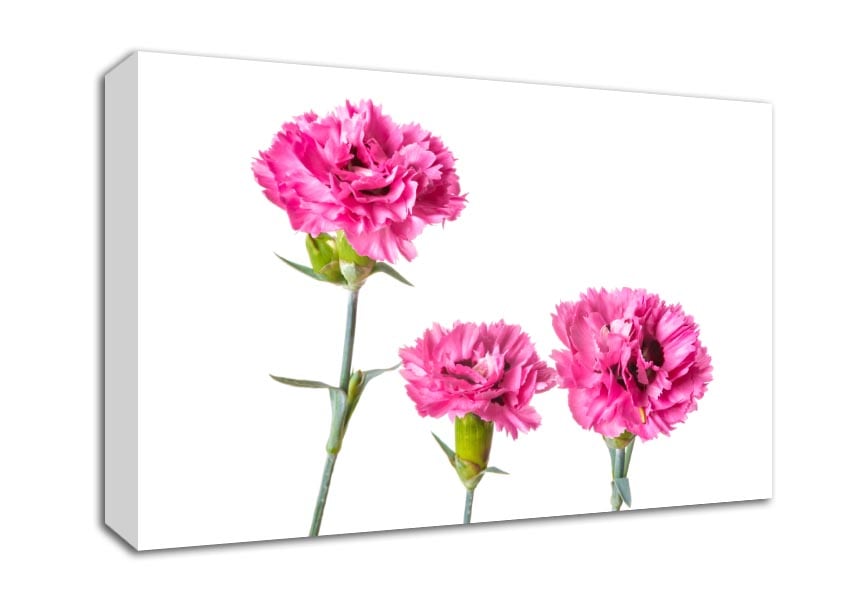 Pink flowers standing up Canvas Print handmade in the UK. Stretched over a 2 inch thick wooden box frame, ready to hang on your wall.