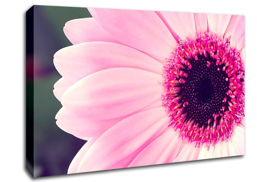 Pink Gerbera Daisy Centre Canvas Print handmade in the UK. Stretched over a 2 inch thick wooden box frame, ready to hang on your wall.