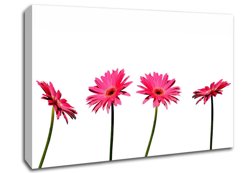 Pink Gerbera Quads Canvas Print handmade in the UK. Stretched over a 2 inch thick wooden box frame, ready to hang on your wall.