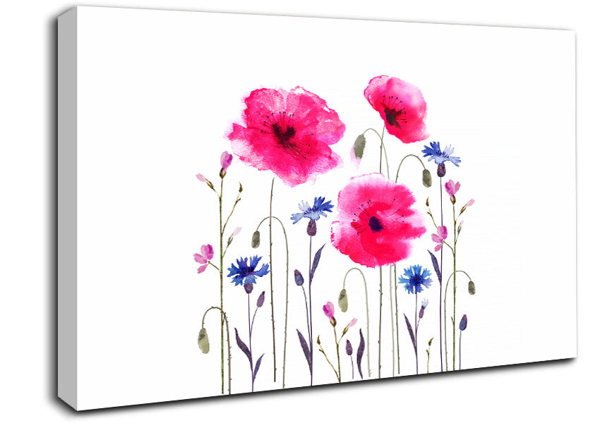Pink Poppy Abstract Canvas Print handmade in the UK. Stretched over a 2 inch thick wooden box frame, ready to hang on your wall.