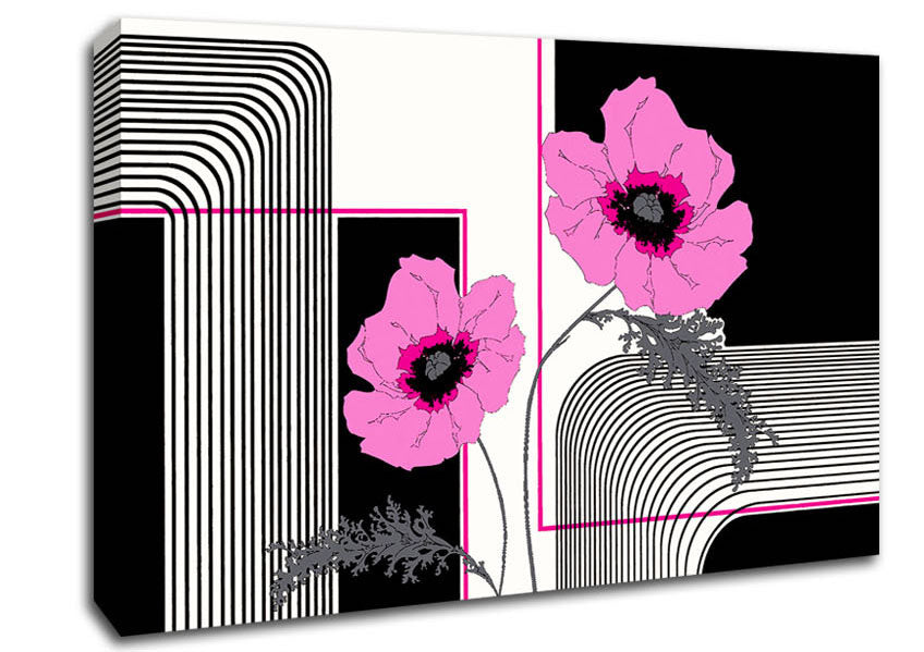 Pink Poppy Stripes Canvas Print handmade in the UK. Stretched over a 2 inch thick wooden box frame, ready to hang on your wall.