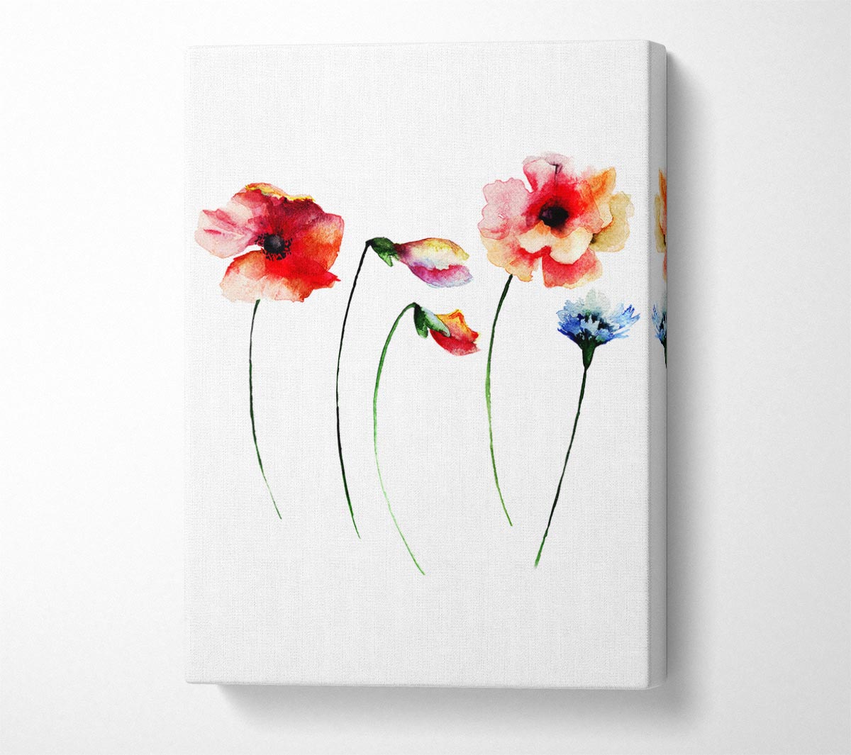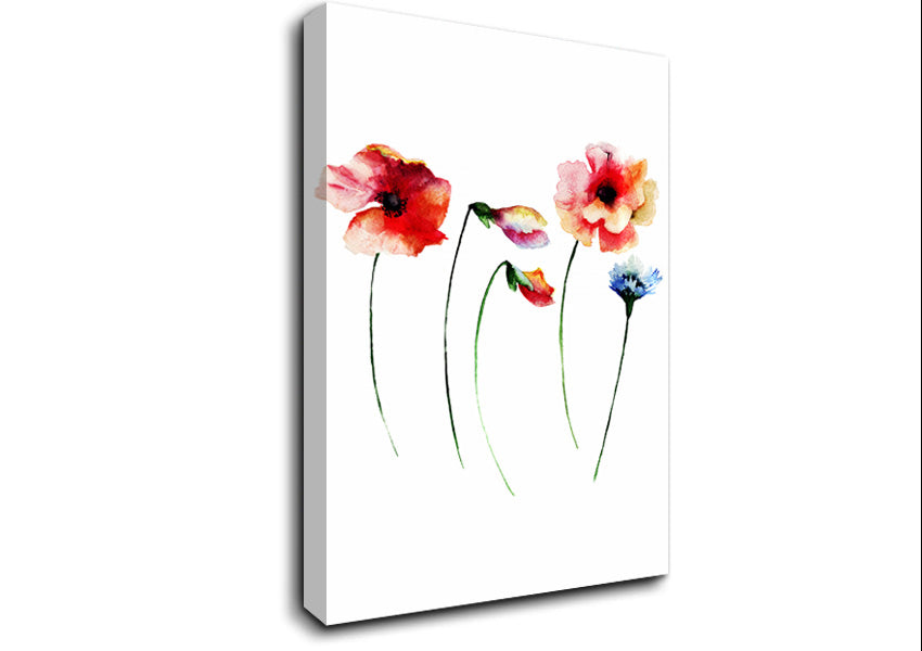 Poppy Stem Beauty Canvas Print handmade in the UK. Stretched over a 2 inch thick wooden box frame, ready to hang on your wall.