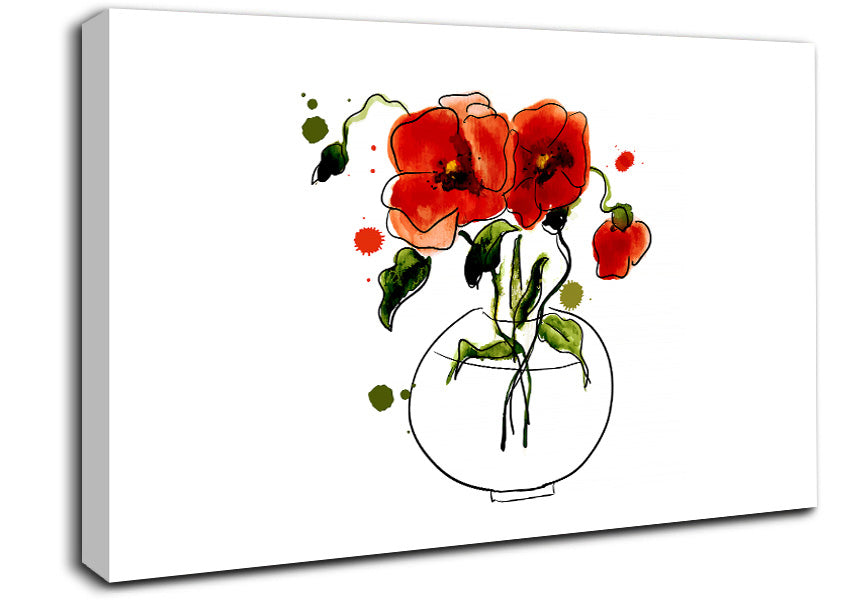 Poppy Vase Canvas Print handmade in the UK. Stretched over a 2 inch thick wooden box frame, ready to hang on your wall.