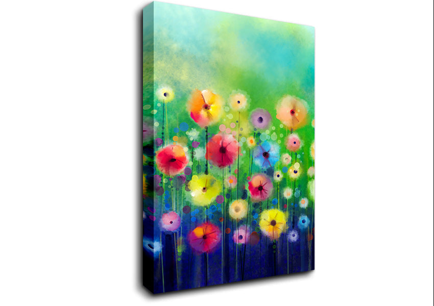 Psychedelic Flower Garden Canvas Print handmade in the UK. Stretched over a 2 inch thick wooden box frame, ready to hang on your wall.
