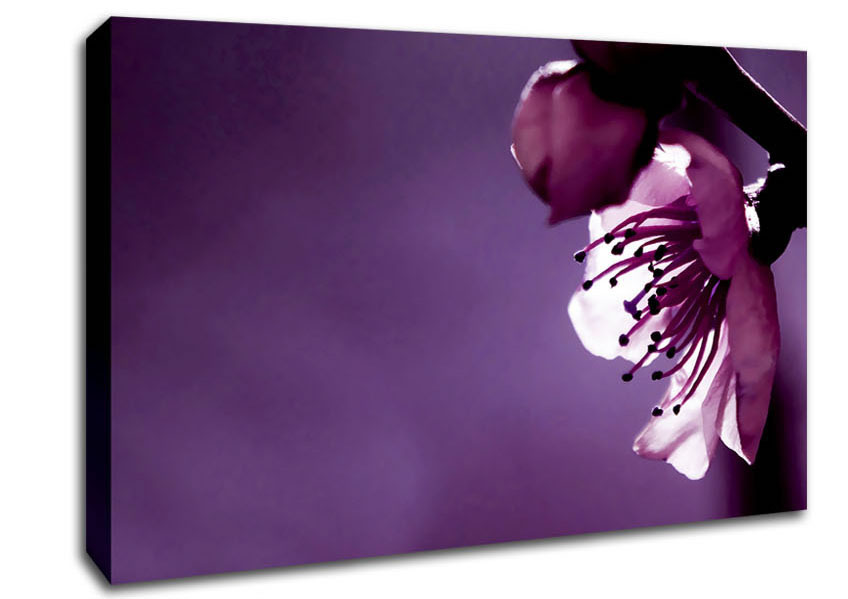 Purple Apple Blossom Canvas Print handmade in the UK. Stretched over a 2 inch thick wooden box frame, ready to hang on your wall.