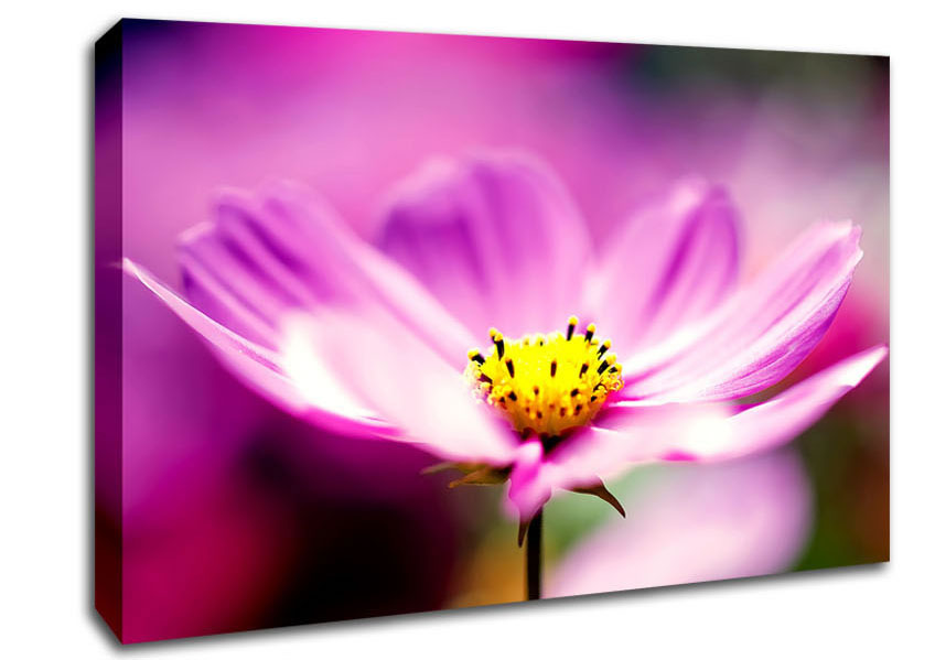 Purple Cosmos Flower Canvas Print handmade in the UK. Stretched over a 2 inch thick wooden box frame, ready to hang on your wall.